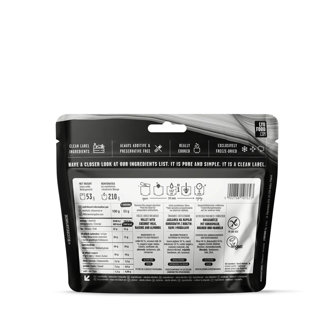 LYO Каша от просо с кокосово мляко, стафиди и бадеми 210g